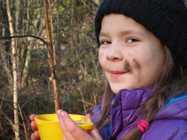Vi lagade lunch ute på stormkök. När man eldar med T-sprit så sotar det en del...